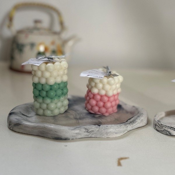 Bandeja irregular marmolada. Hecha con yeso, cemento blanco y marmolina, para que quede super resistente.